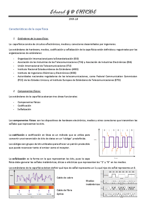 En este resumen se habla de la capa física, sus características, tipos de cableado y los medios inalámbricos.