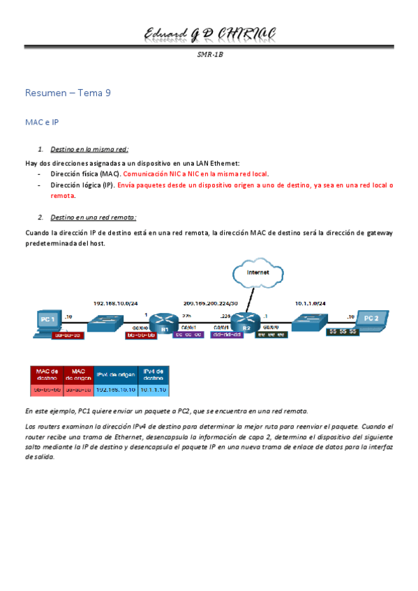 En este resumen se verán los aspectos y funciones de las direcciones MAC e IP, el propósito de ARP y la detección de vecinos.