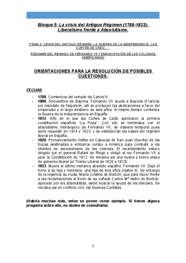 Historia de España Preguntas cortas
