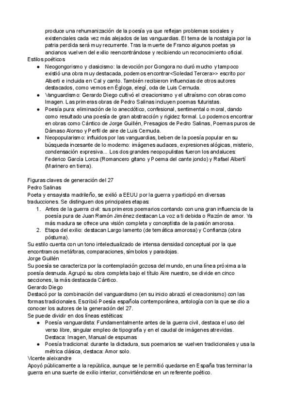 La poesía del grupo poético del 27, La novela desde 1939 hasta los años 70, El teatro desde 1939 hasta nuestros días