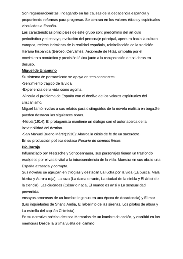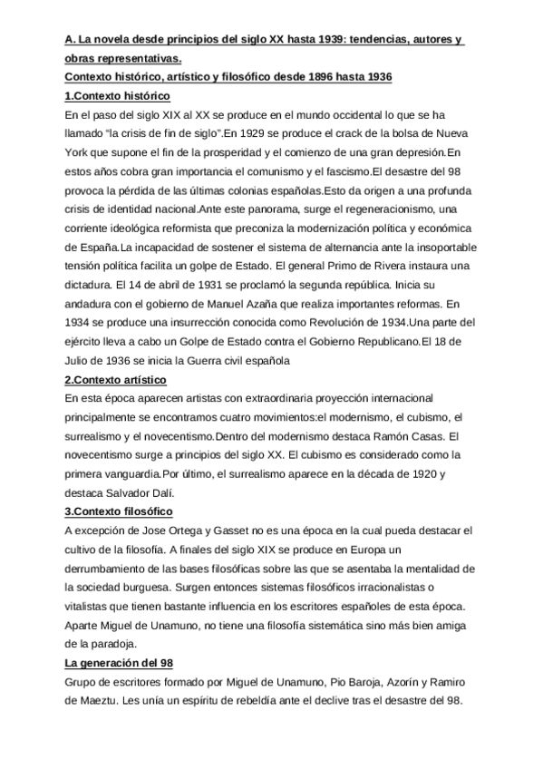 La novela desde principios del siglo XX hasta 1939, El teatro desde principios del siglo XX hasta 1939. La poesía desde el Modernismo a las vanguardias,
