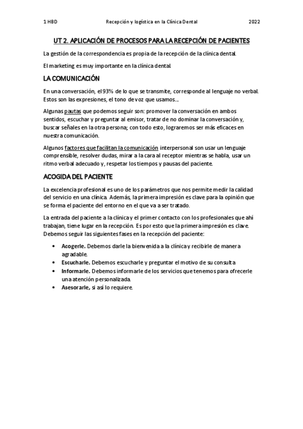 He publicado nuevos apuntes de Organización y gestión del área de trabajo asignada en la unidad/gabinete de Higiene Bucodental: U2-Recepcion.pdf