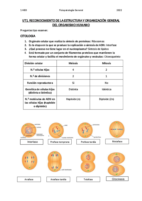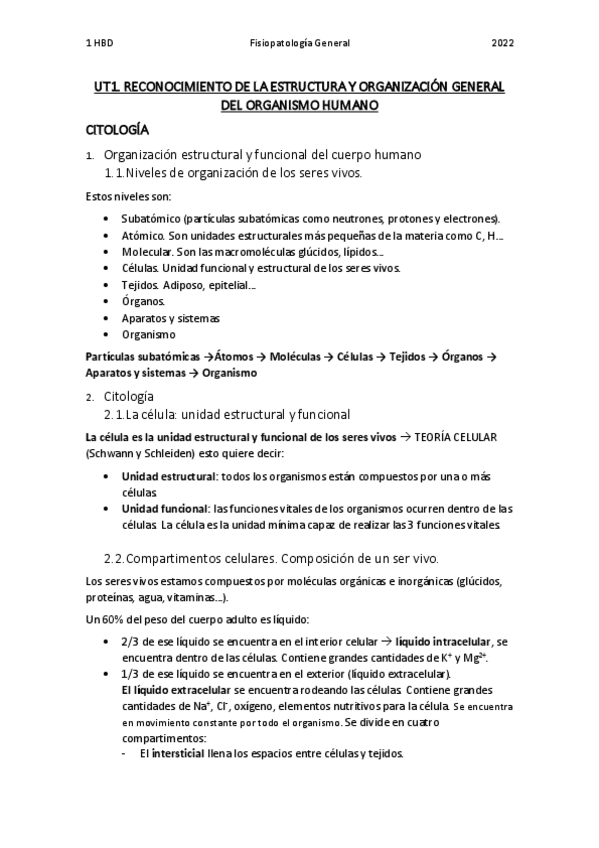 Contenidos a examen de citología de la unidad 1. Clases del profesor JPL