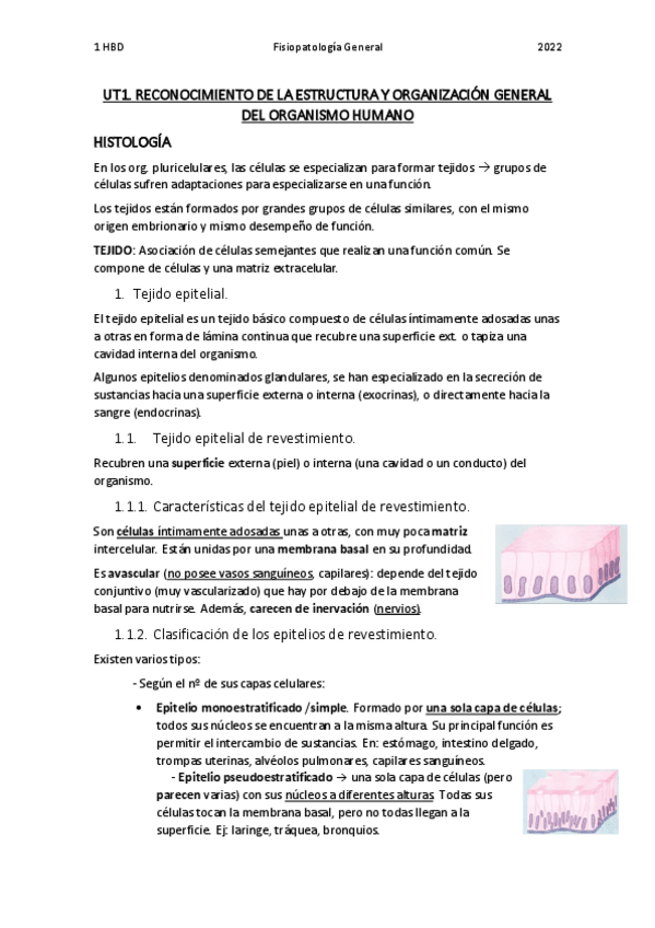 Contenidos a examen de histología de la unidad 1. Clases del profesor JPL