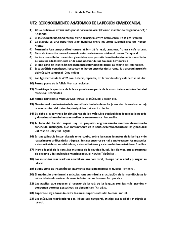 Preguntas de examen y actividades de la UD2. RECONOCIMIENTO ANATÓMICO DE LA REGIÓN CRANEOFACIAL