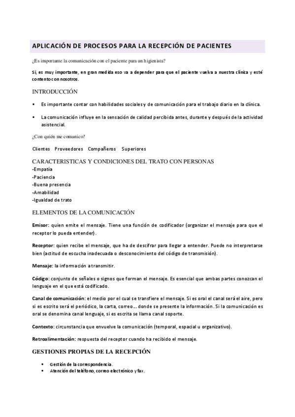 He publicado nuevos apuntes de Organización y gestión del área de trabajo asignada en la unidad/gabinete de Higiene Bucodental: U.1.Recepcion.pdf