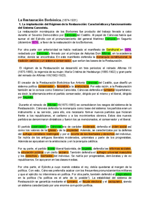 Desde la Restauración borbónica, hasta la transición del capitalismo(este incluido)