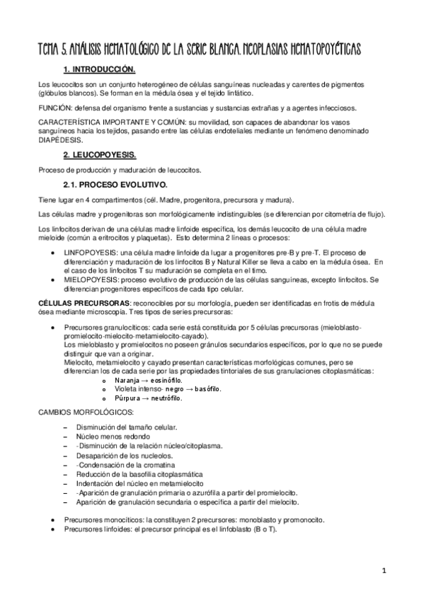 He publicado nuevos apuntes de Técnicas de análisis hematológico: Temario Hematología