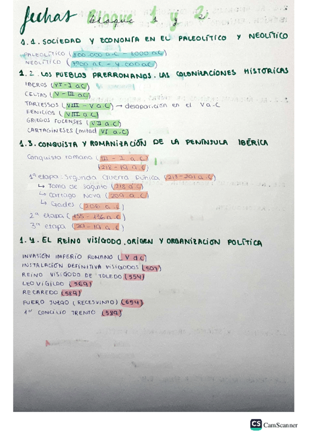 Fechas más significativas por colores, a mano y del bloque 1 y 2