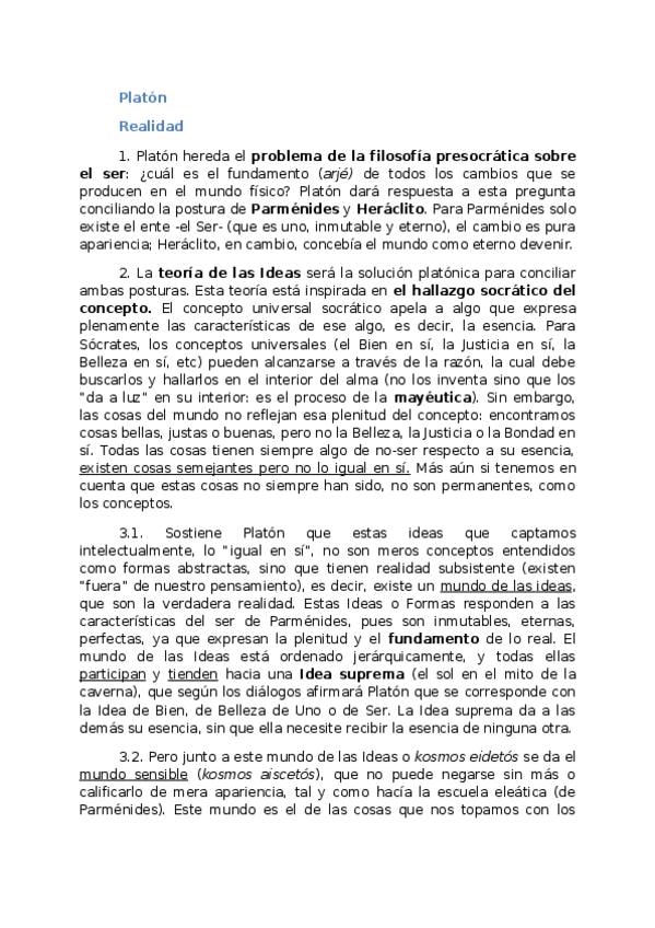 Los 3 temas de filosfía de Platón (Realidad y Conocimiento, Ser Humano, Política) para sacar un 10 en la PAU
