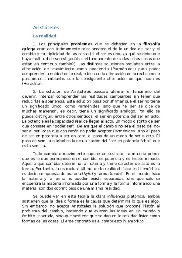 Los 2 temas de Aristóteles (Realidad y Conocimiento) para sacar un 10 en la PAU