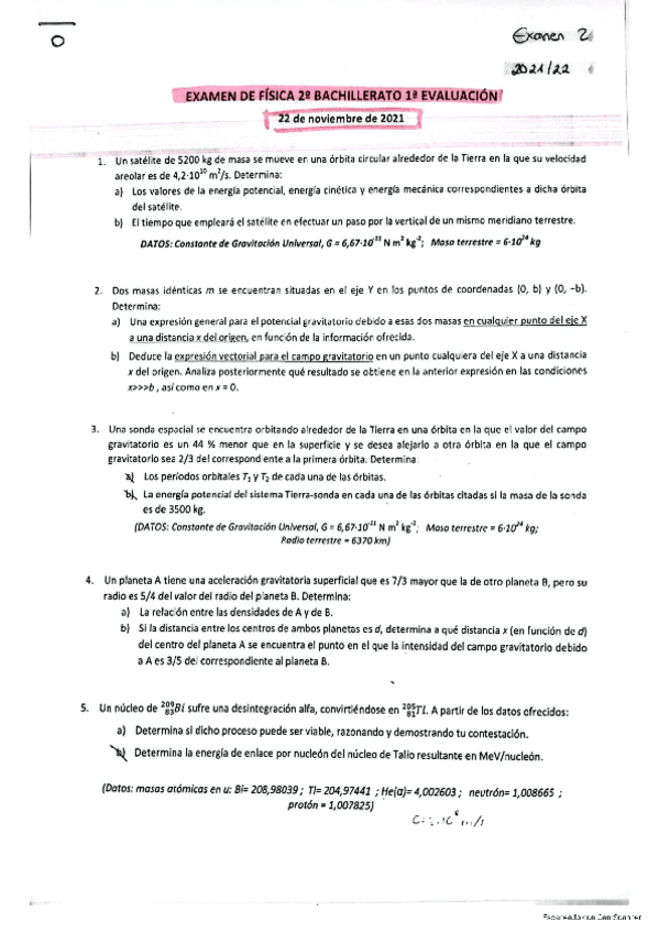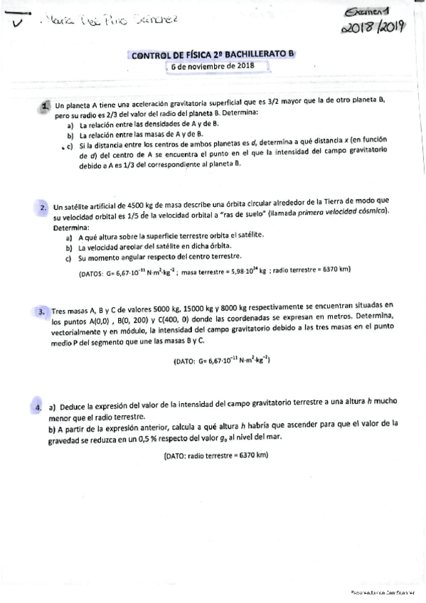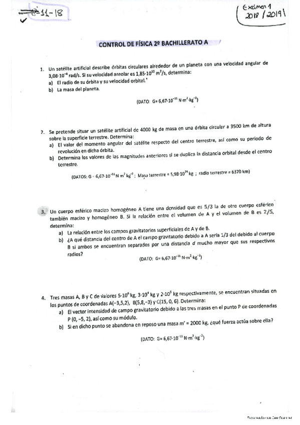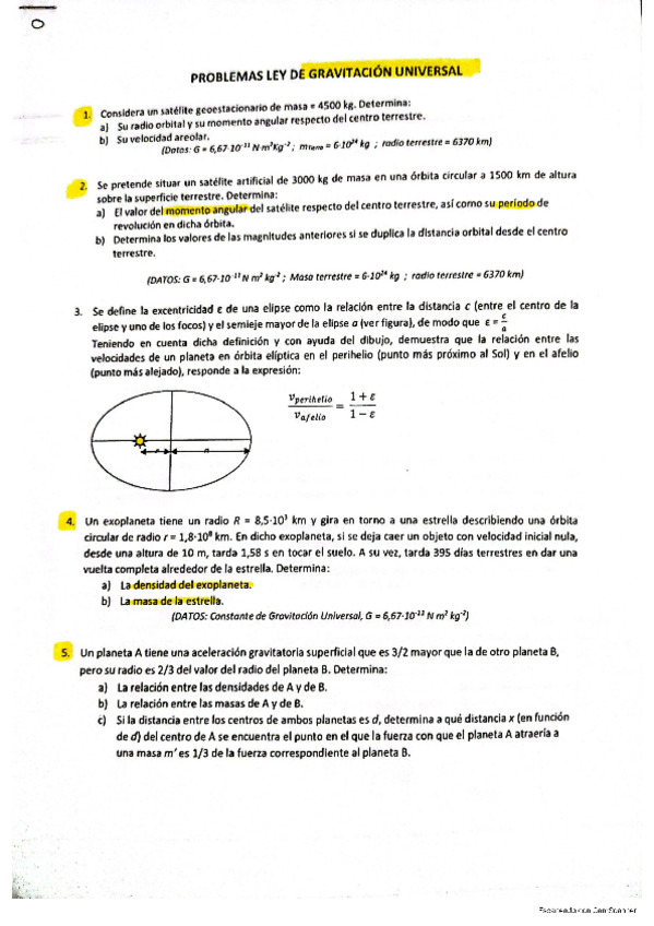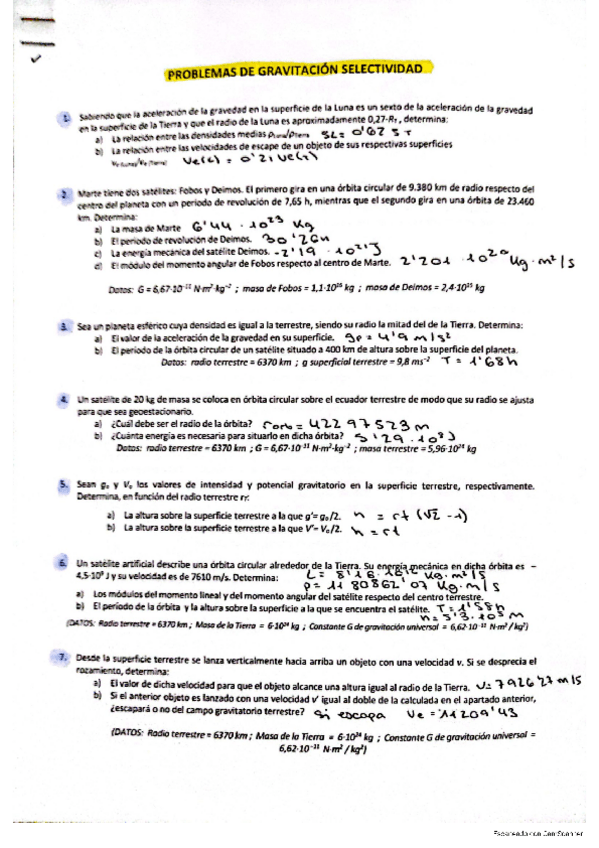 Ejercicios. Bloque 1: Gravitación.