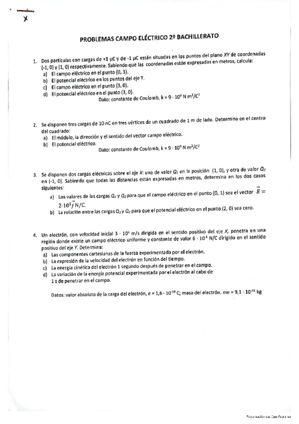 Ejercicios. Bloque 2: Electromagnetismo..