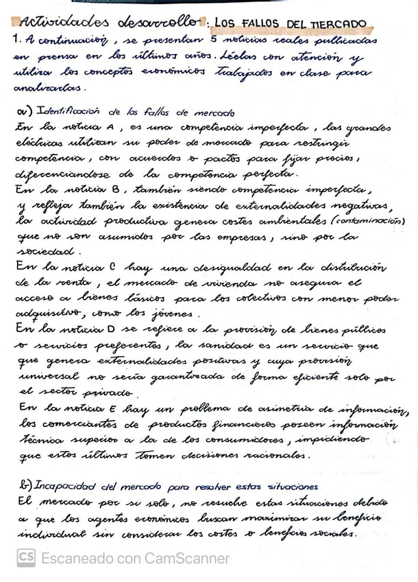 Cuadernillo de fallos de mercado de economía de 1 de bach de ciencias sociales