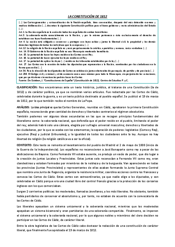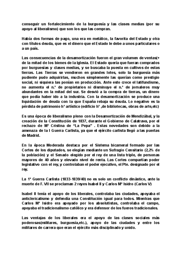 Apuntes de todo el siglo XIX, y hasta la segunda República, ya que no vimos más. Los temas están muy resumidos pero en el examen no se puede escribir mucho más.