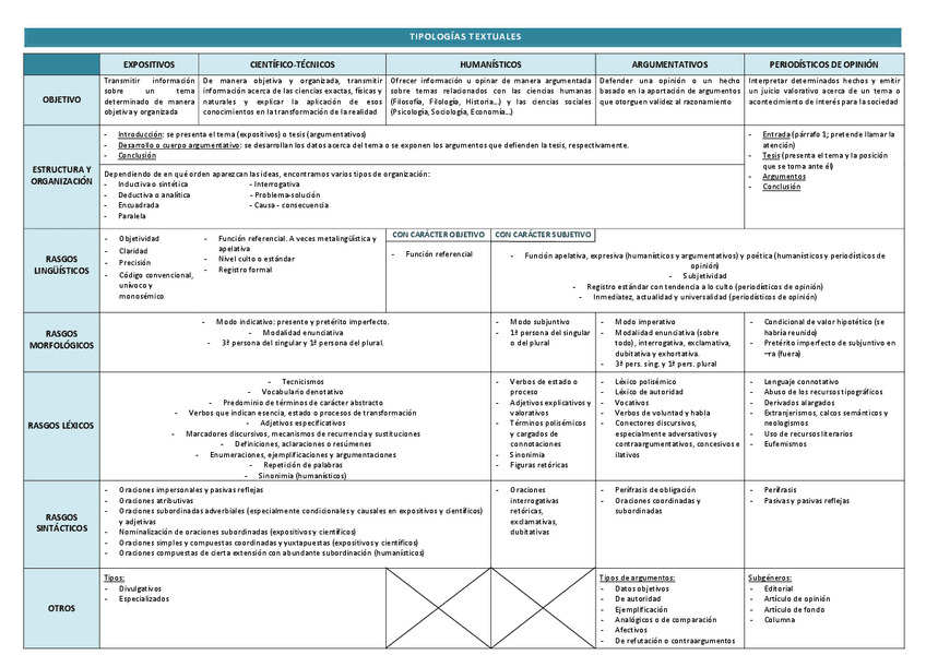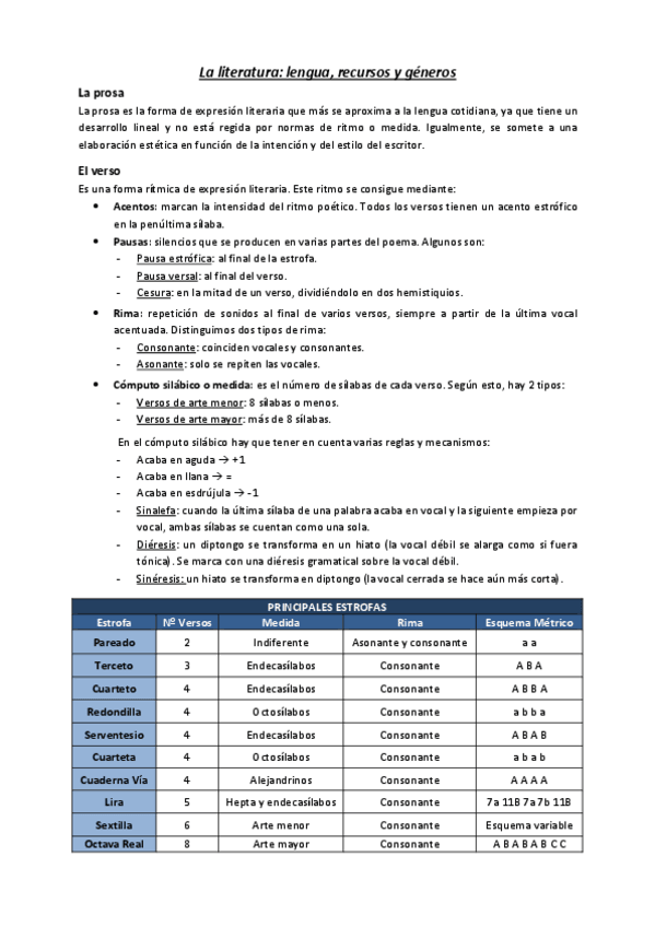 Esquemas lengua y literatura 2° Bach