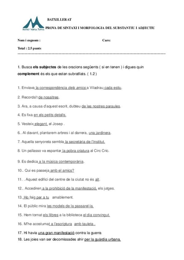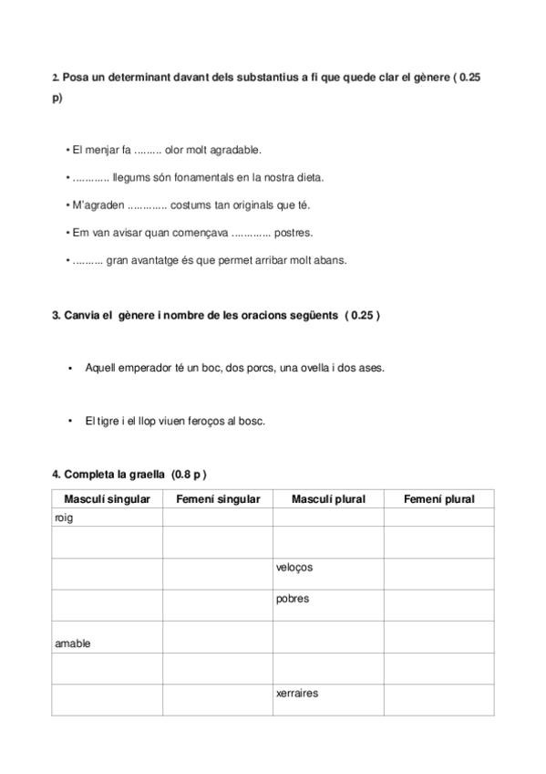 Prueba para practicar exámenes de sintaxis y cambio de género en catalán.
