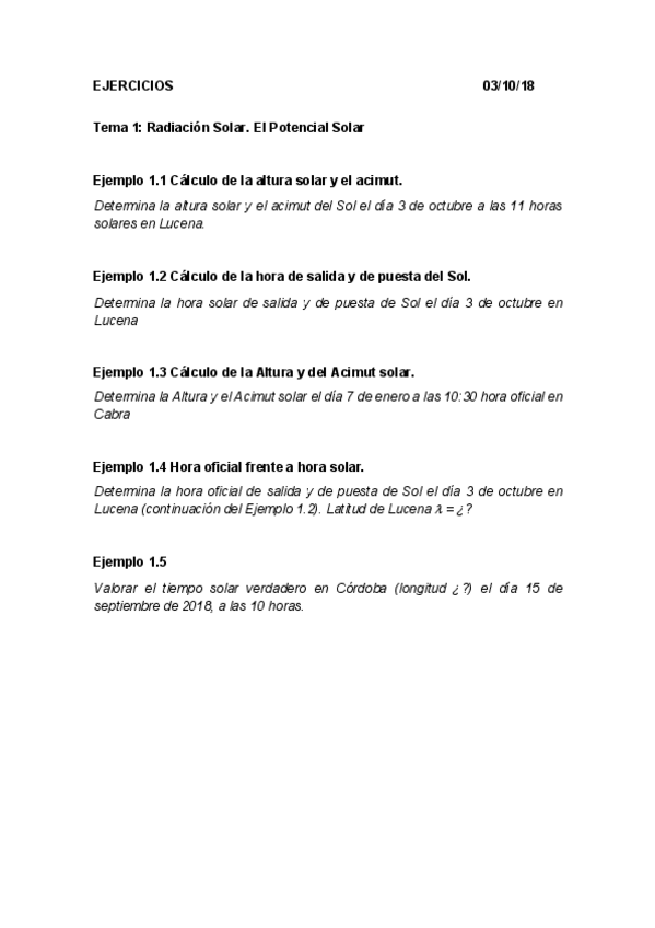 He publicado nuevos ejercicios de Configuración de instalaciones solares térmicas: Tema 1: Radiación y potencial solar