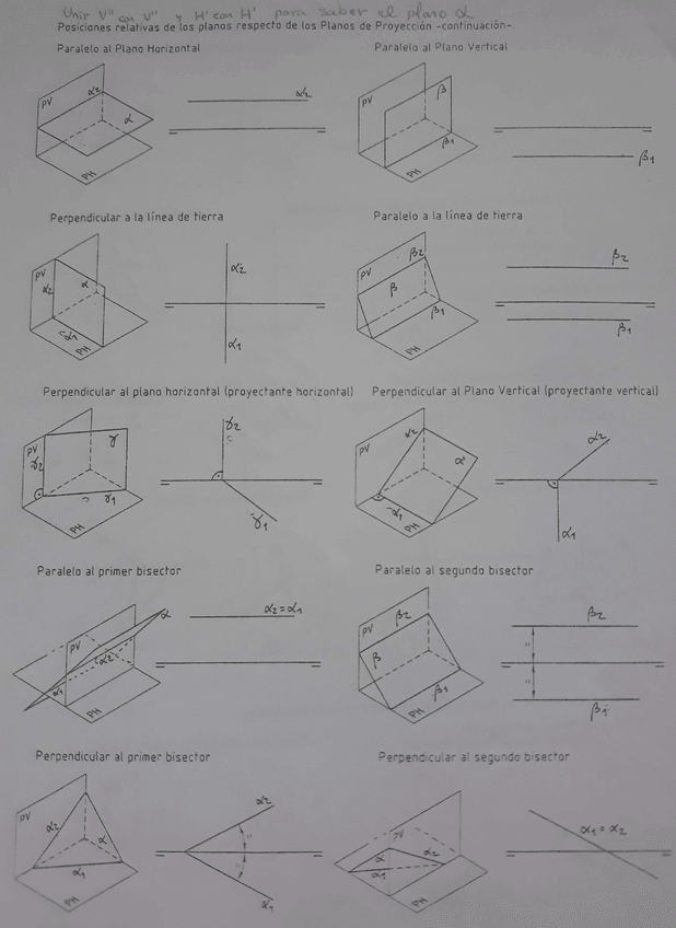 Posiciones relativas de los planos respecto de los planos de proyección-continuación-