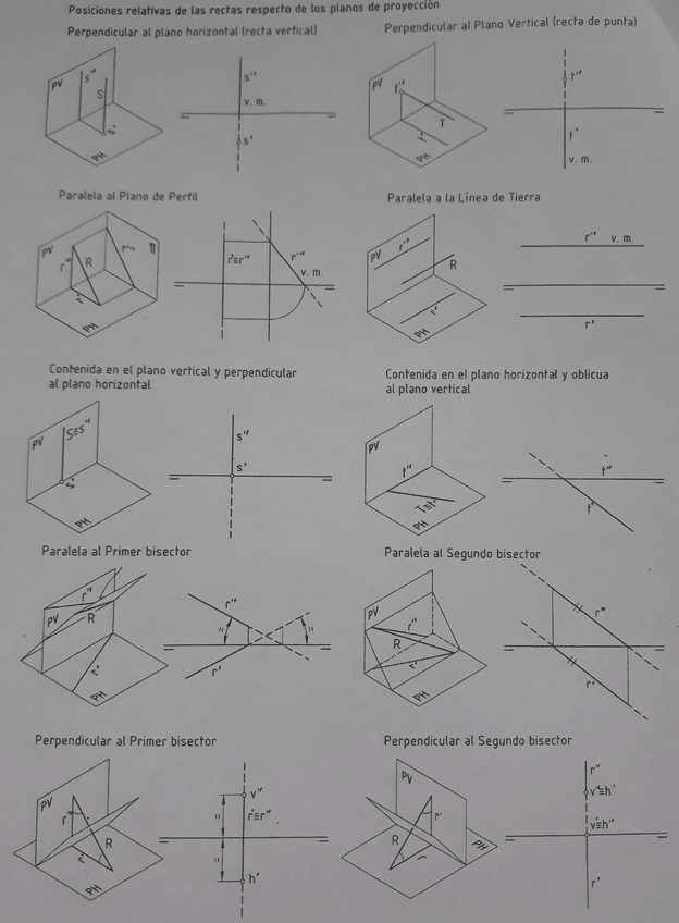 Posiciones relativas de las rectas respecto de los planos de proyección