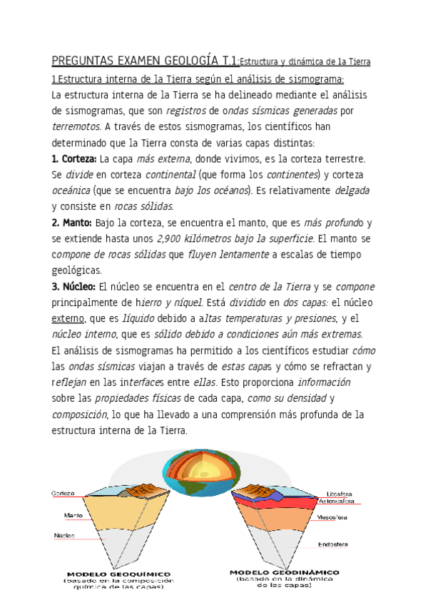 Tema de la estructura interna de la Tierra y sus métodos de estudio