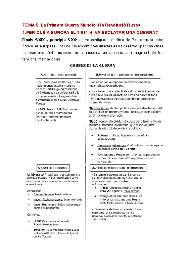 Resum complet Tema 1ra Guerra Mundial i Revolució Russa