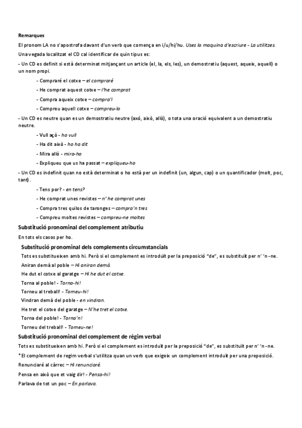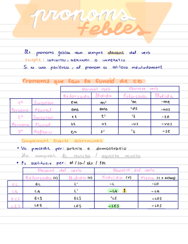 Apuntes de pronoms febles. Muy visuales y están todas las excepciones bien explicadas y señaladas.
