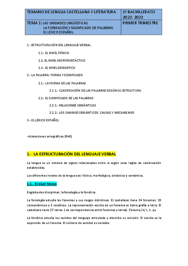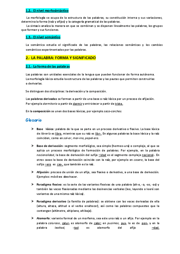 - ESTRUCTURACIÓN DEL LENGUAJE VERBAL-LA PALABRA: FORMA Y SIGNIFICADO-EL LÉXICO ESPAÑOL