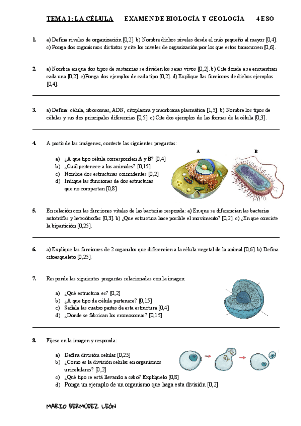 He publicado nuevos examenes de 4º Biología y Geología: LA CELULA EXAMEN BIOLOGIA.pdf