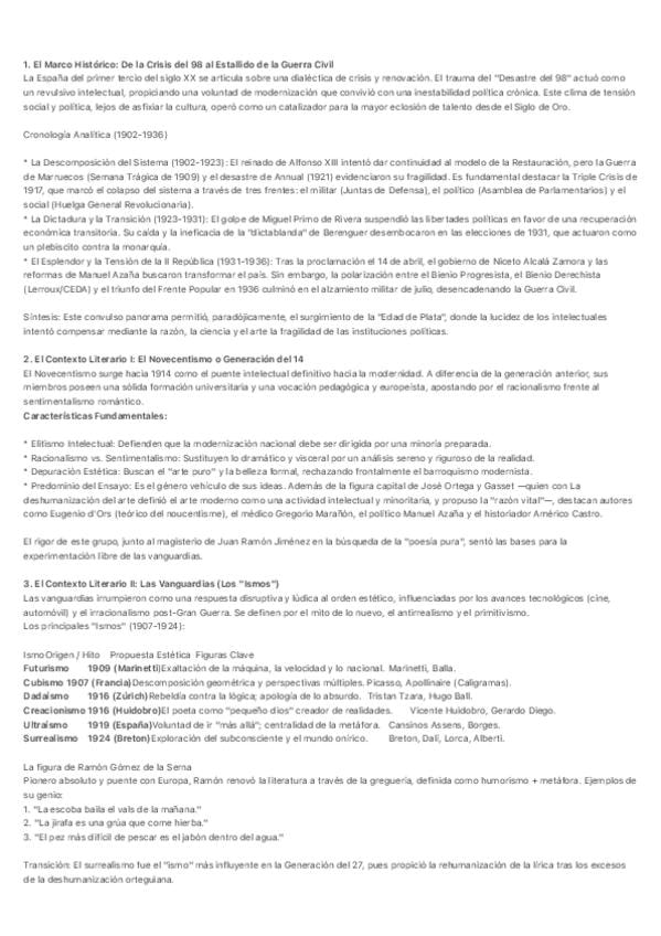 Contexto histórico y literario de la generación del 27