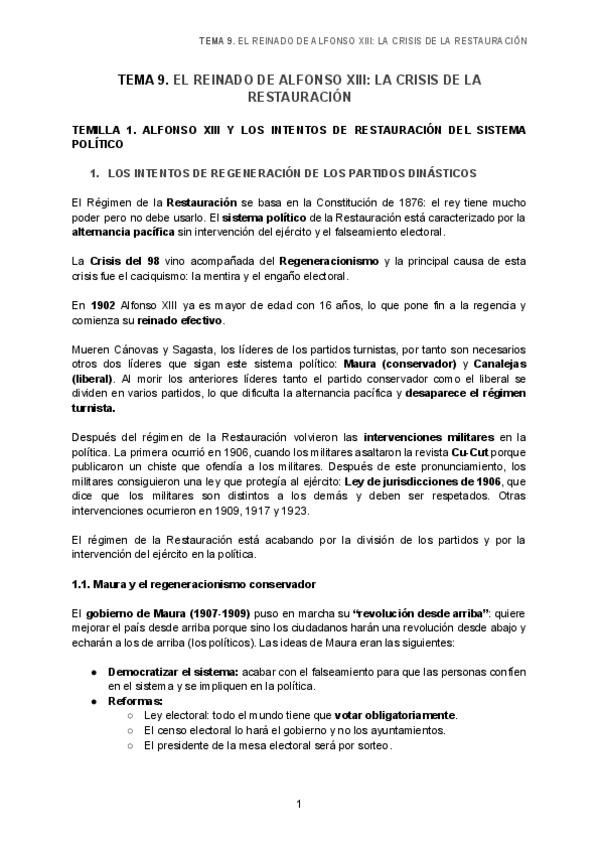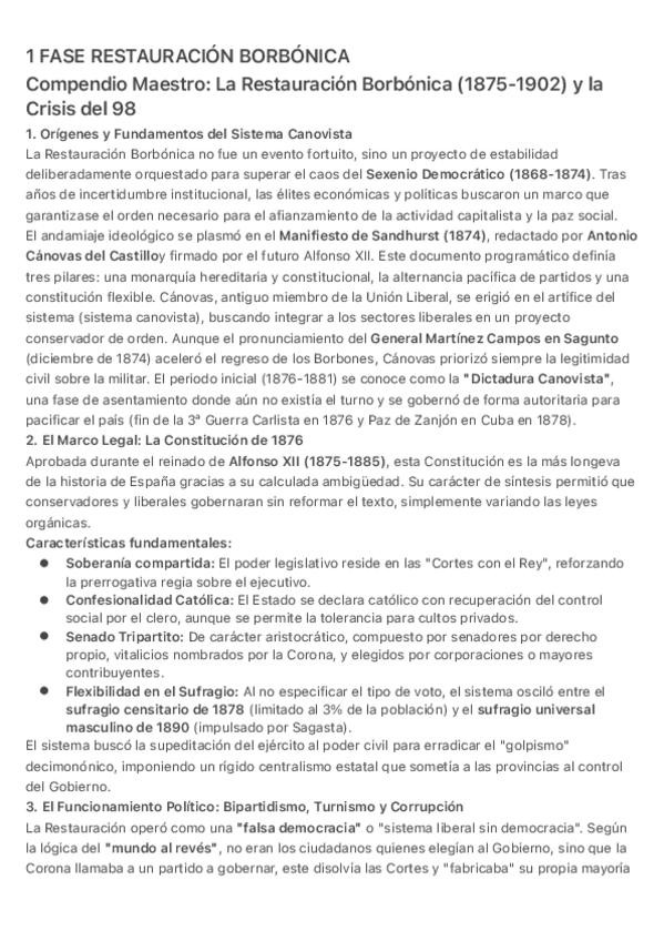 Las cuatro fases de la restauración borbónica desde 1875-1930 acabando con Primo