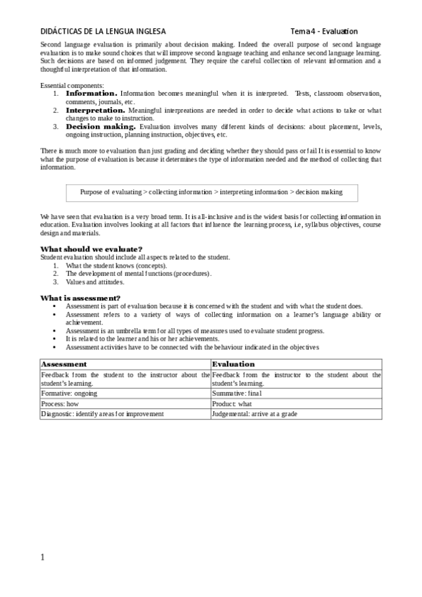He publicado nuevos apuntes de 1º Didácticas de la Lengua Inglesa: evaluation.pdf