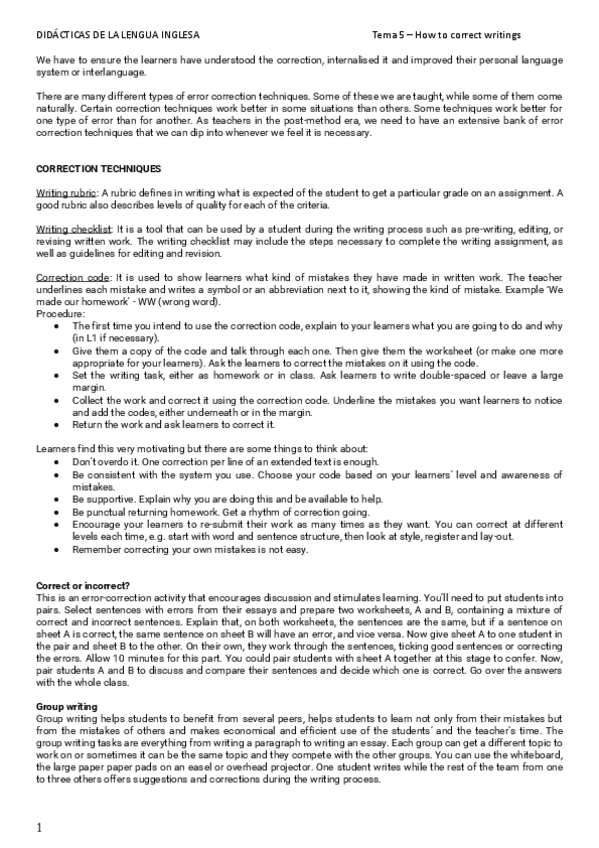 He publicado nuevos apuntes de 1º Didácticas de la Lengua Inglesa: error-correction-2.pdf