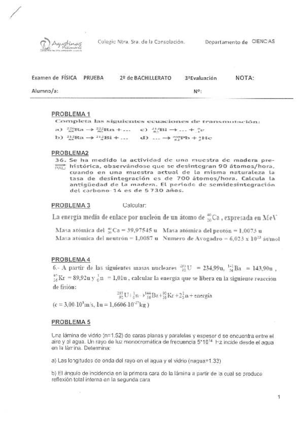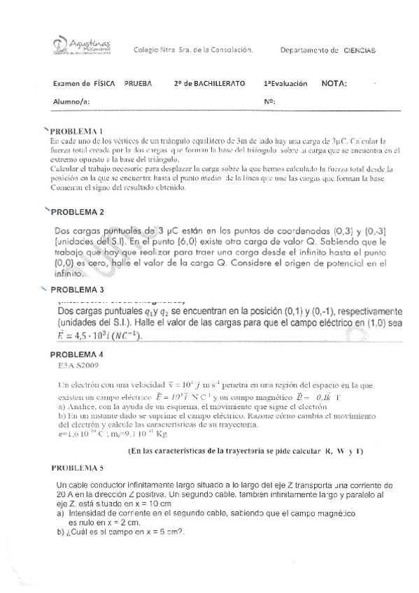 Exámenes Física 2º Bachillerato