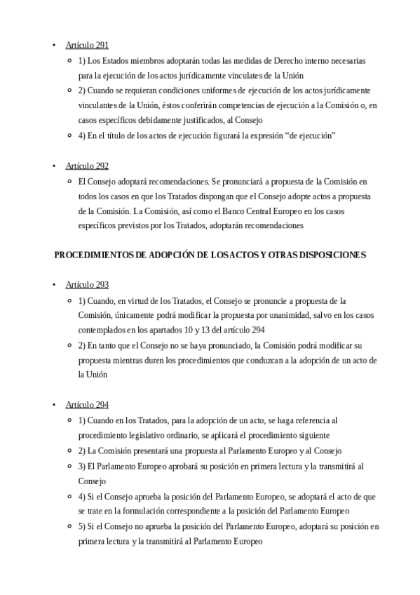 Esquema de la CE, para tipo test, diferenciado por artículos.