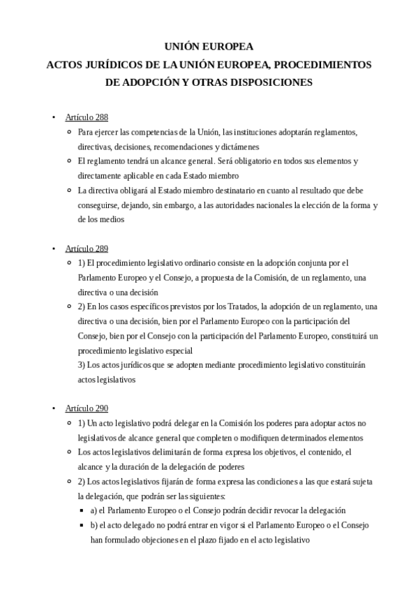 Esquema de la CE, para tipo test, diferenciado por artículos.