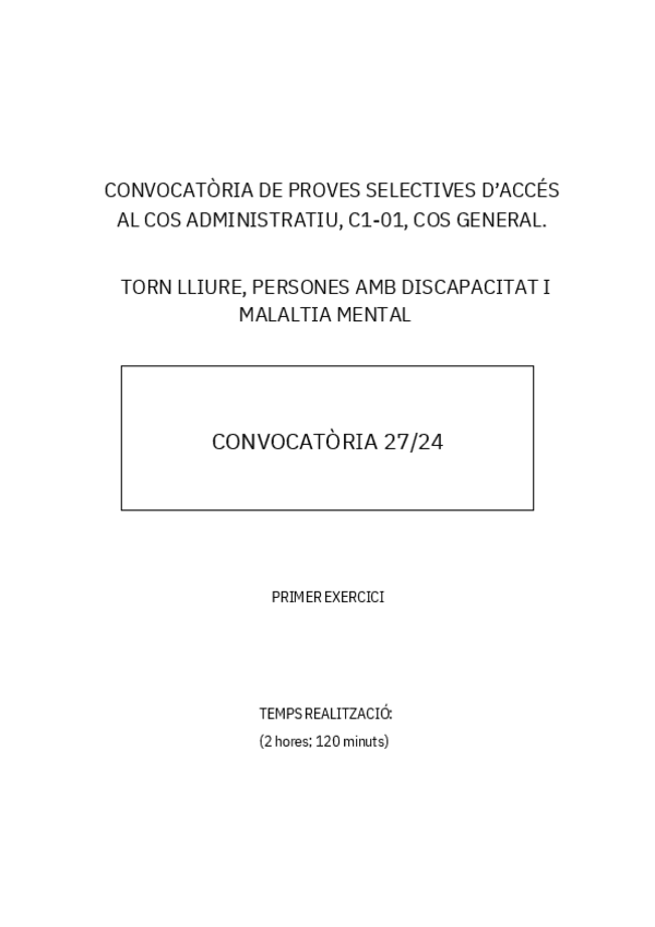 Convocatoria 27/24. Proceso selectivo número 1: cuerpo administrativo, C1-01. Turno libre