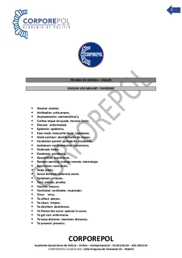 He publicado nuevos apuntes de Acceso a los Cuerpos de Policía Local: Temario-ingles-Vocabulario-Pandemia.pdf