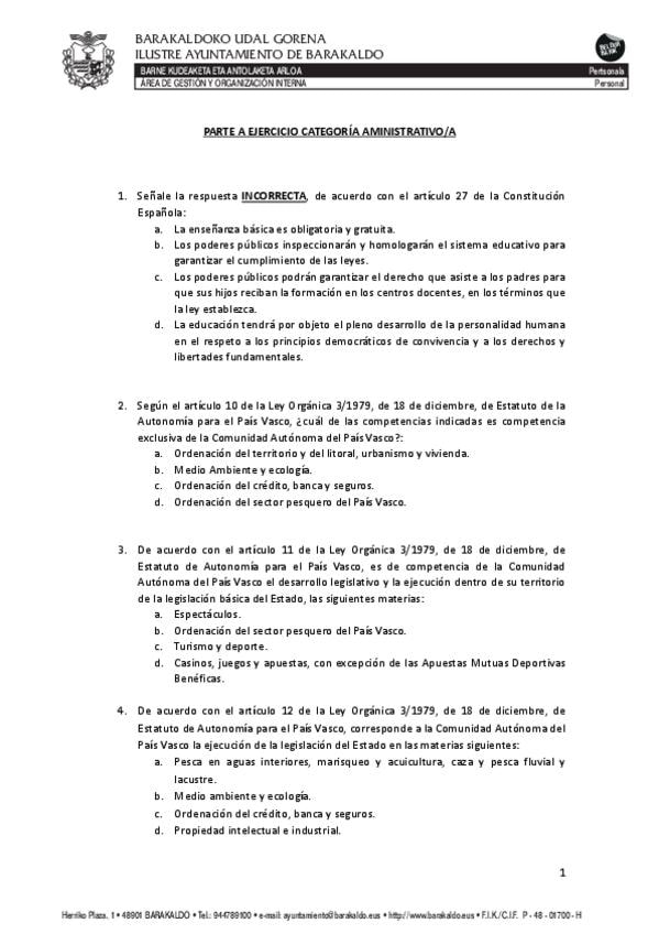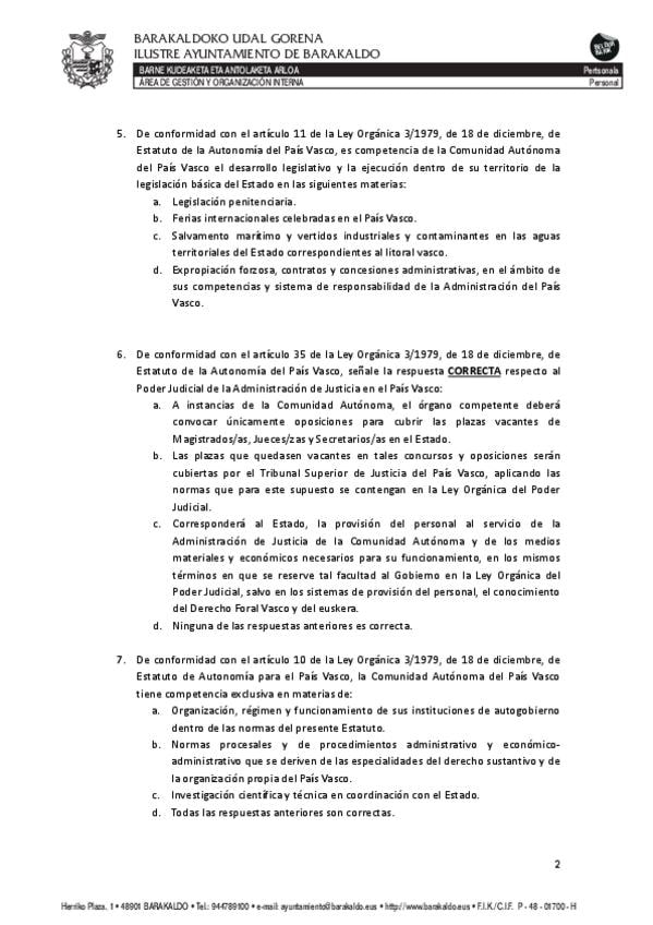 Respuestas examen administrativo ayuntamiento Barakaldo