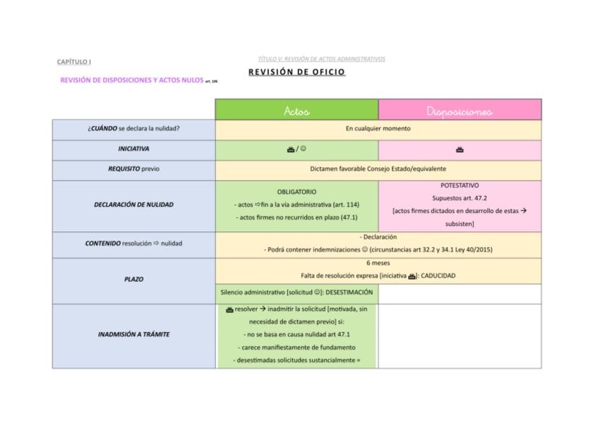 Tabla sobre la revisión de oficio de actos y disposiciones, artículo 106 de la Ley 39/2015