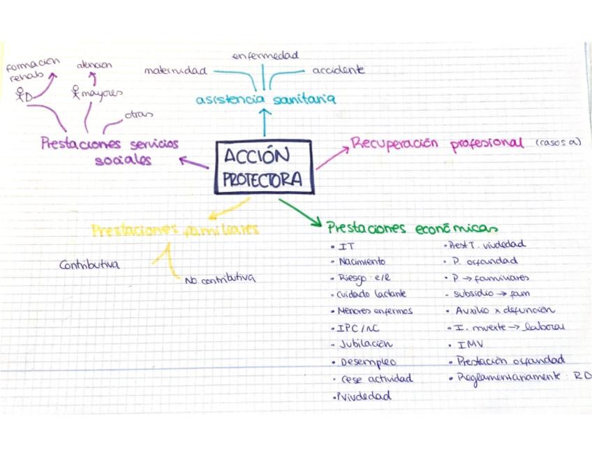 mapas conceptuales sobre la Ley de la Seguridad Social, acción protectora, campo de aplicación, prestaciones y afiliación
