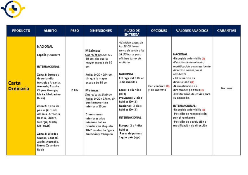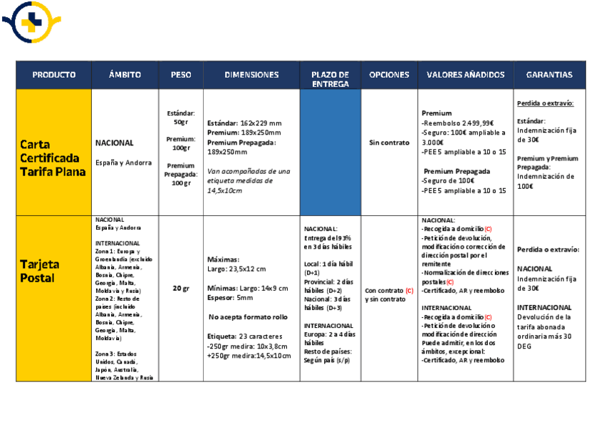 Aquí encontrareis todo los esquemas de productos y servicios postales