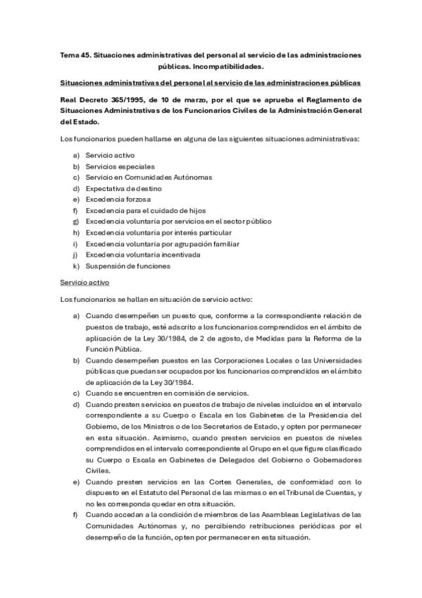 Las situaciones administrativas del personal al servicio de las administraciones públicas y el régimen de incompatibilidades.