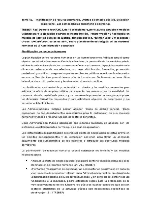 Planificación de recursos humanos. Ofertas de empleo público. Selección de personal. Las competencias en materia de personal.