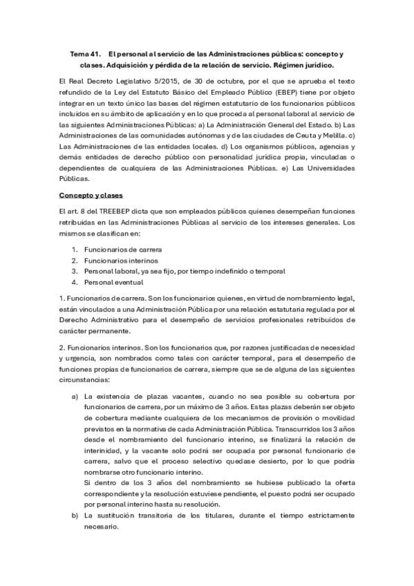 El personal al servicio de las Administraciones públicas: concepto y clases. Adquisición y pérdida de la relación de servicio. Su régimen jurídico.