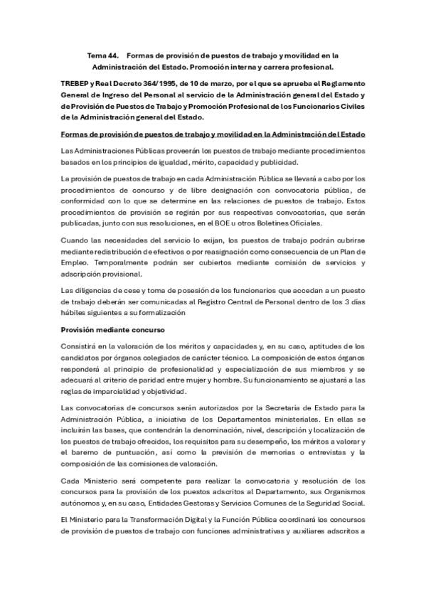Formas de provisión de puestos de trabajo y movilidad en la Administración del Estado. Promoción interna y carrera profesional.