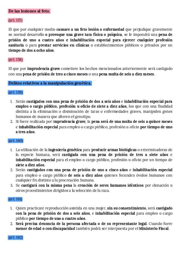 DE LAS LESIONES AL FETO. DELITOS RELATIVOS A LA MANIPULACIÓN GENÉTICA. DELITOS CONTRA LA LIBERTAD.