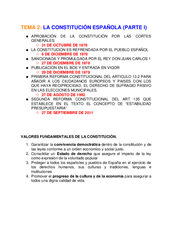 Resumida y esquematizada la CE (faltan algunos artículos NO importantes)