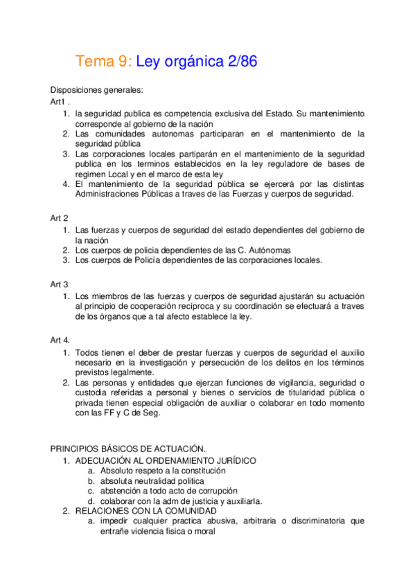 RESUMEN TEMA 5. ORGANIZACIÓN Y FUNCIONAMIENTO DE LA ADMINISTRACIÓN GENERAL DEL ESTADO. POLICIA NACIONAL. ESCALA BASICA