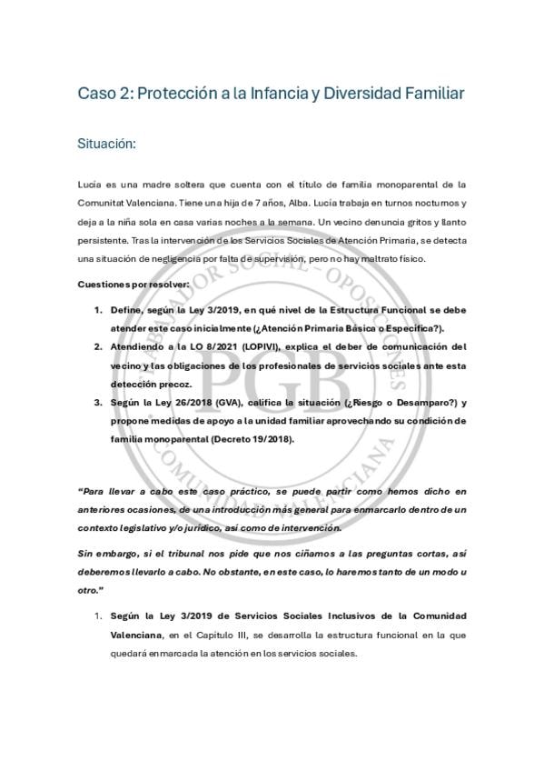 CASO RESUELTO DE PREGUNTAS ORIGINALES DE EXAMEN DE TRABAJO SOCIAL DE LA GENERALITAT VALENCIANA. SE RESUELVEN VARIOS SUPUESTOS PRACTICOS